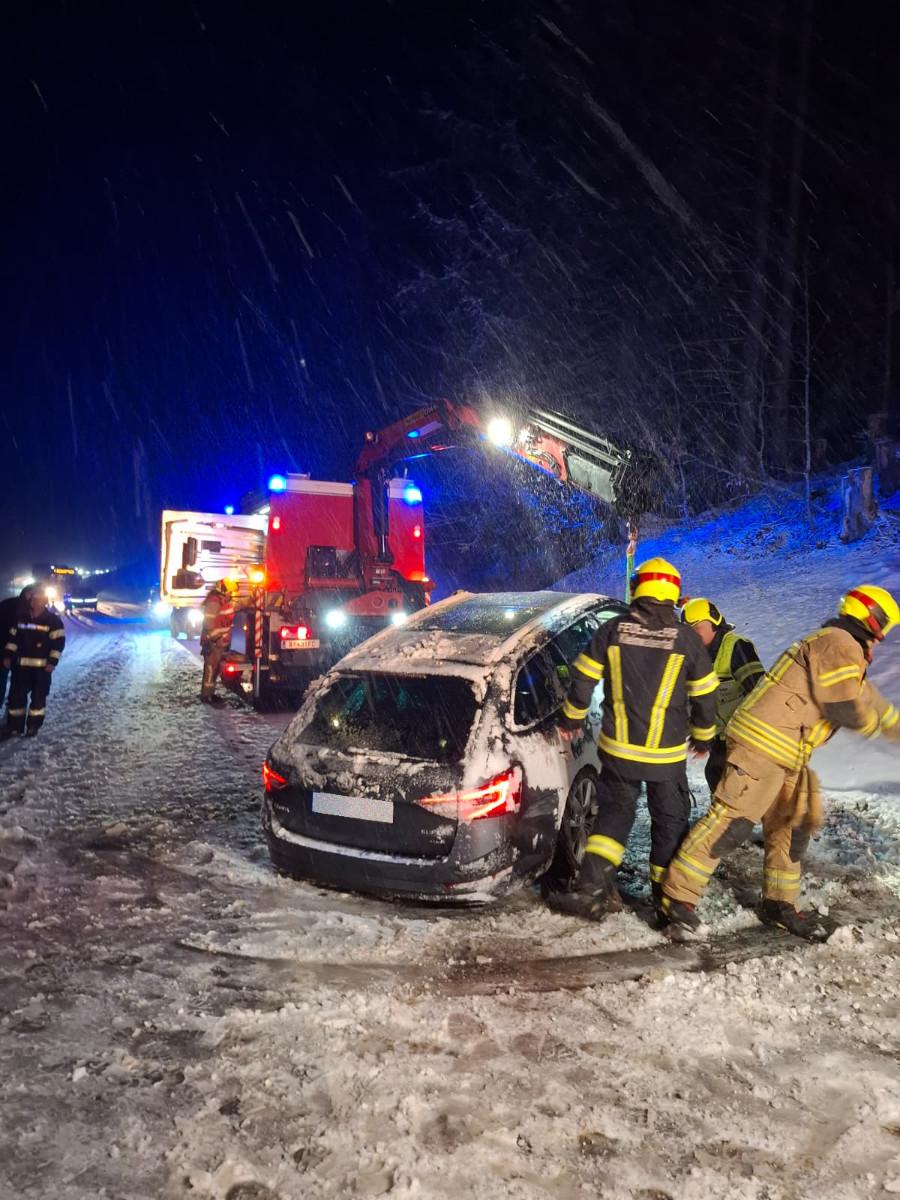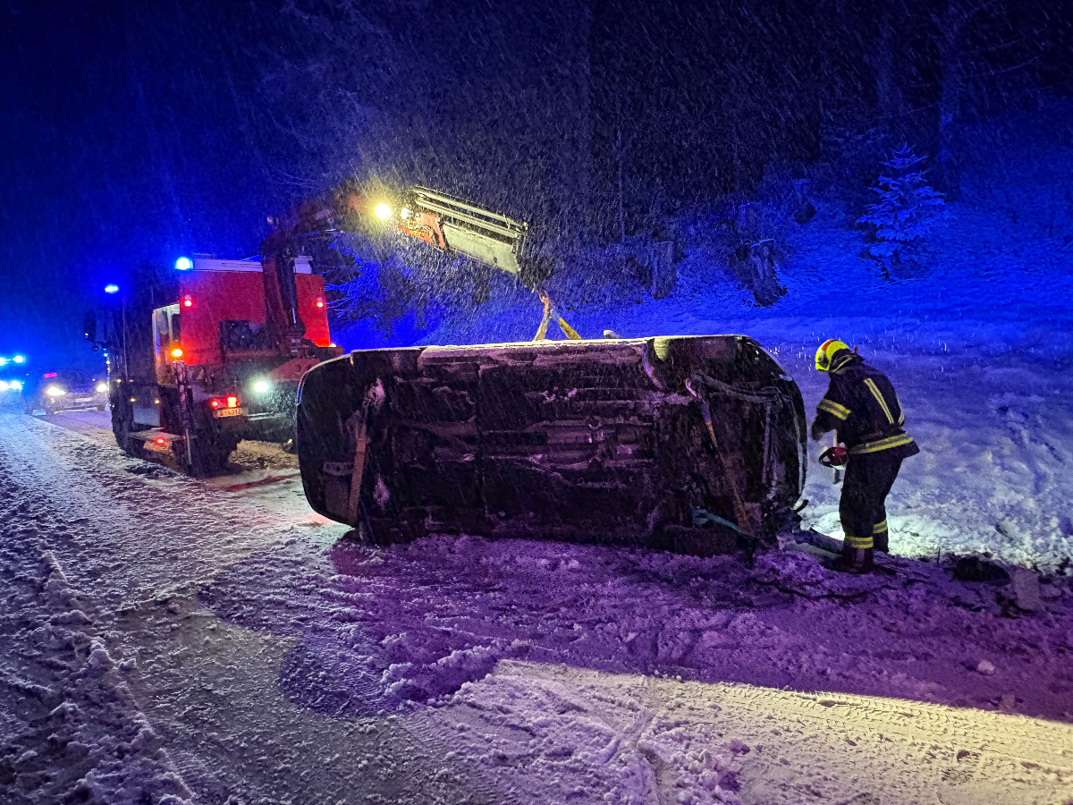 Aufgrund der Schneefahrbahn verlor der Fahrer vermutlich aufgrund der winterlichen Fahrverhältnisse die Kontrolle über sein Fahrzeug. Dabei kam der PKW über das Bankett hinaus, und kippte auf die linke Fahrzeugseite wo er zum Liegen kam. Der Fahrer wurde bei dem Unfall nicht verletzt, am Fahrzeug entstand erheblicher Sachschaden. Der PKW wurde durch das schwere Rüstfahrzeug der Feuerwehr Riezlern angehoben, wieder auf die Räder gestellt und auf den nahe gelegenen Parkplatz abgeschleppt.